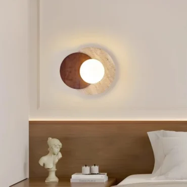 Lysekil – Travertine and Wood Minimalist Wall Sconce